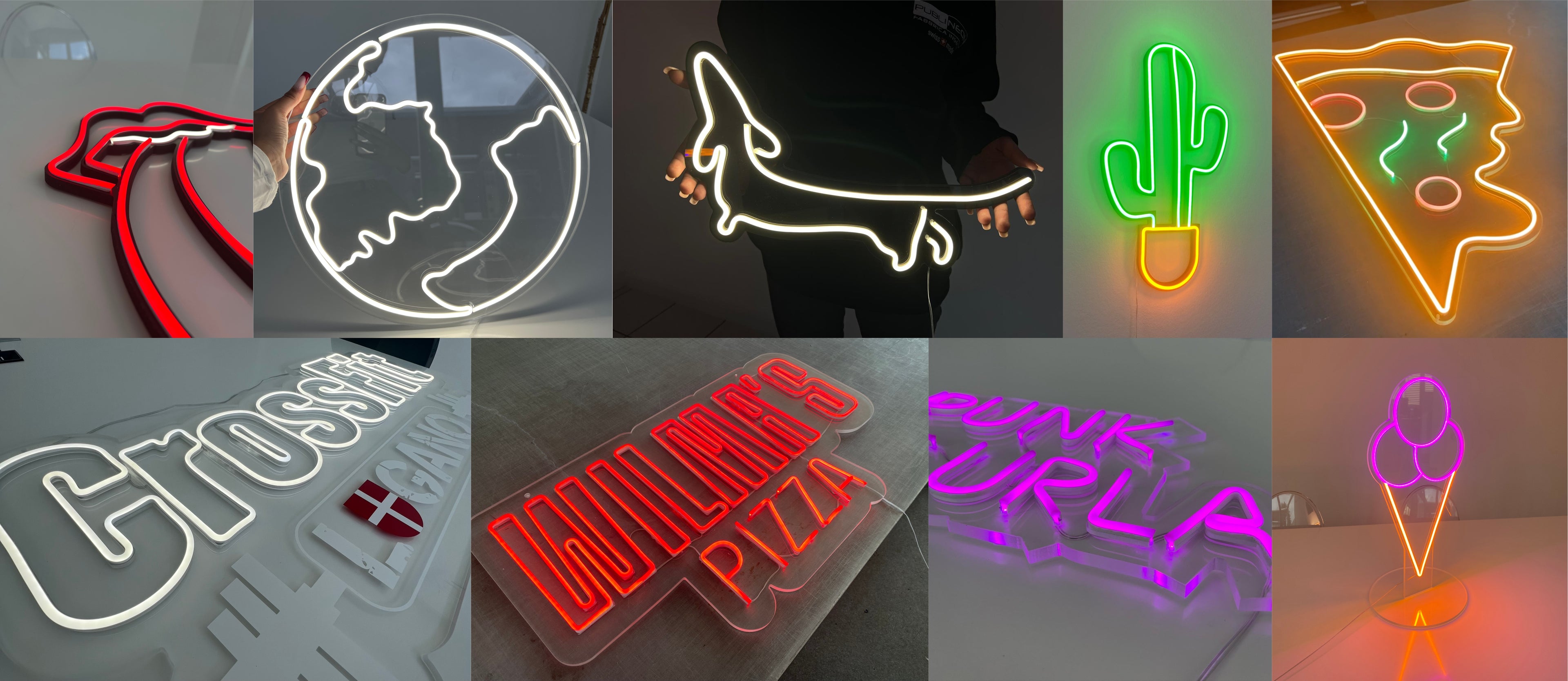 Illumina i tuoi spazi con le nostre insegne artigianali al neon a LED di alta qualità, costruite a mano in Ticino.